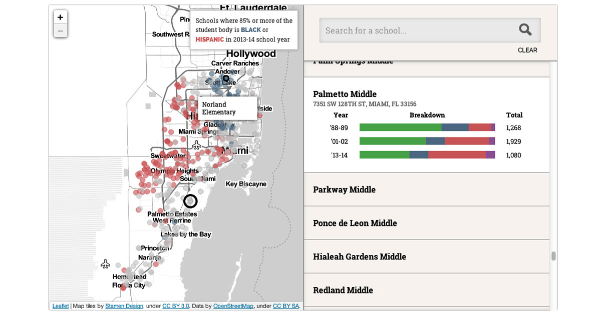 Note Some schools, like online schools, may not be shown on map due to a lack of a physical location. This analysis excluded some special programs, vocational and alternative schools Sources Miami Herald analysis of data compiled by Miami-Dade County Public Schools and the National Center for Education Statistics Produced by Lazaro Gamio