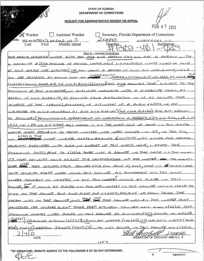 Early in the week after the incident, maintenance workers at the prison disabled the plumbing that fed the shower, Hempstead told the Herald in an interview at the prison.