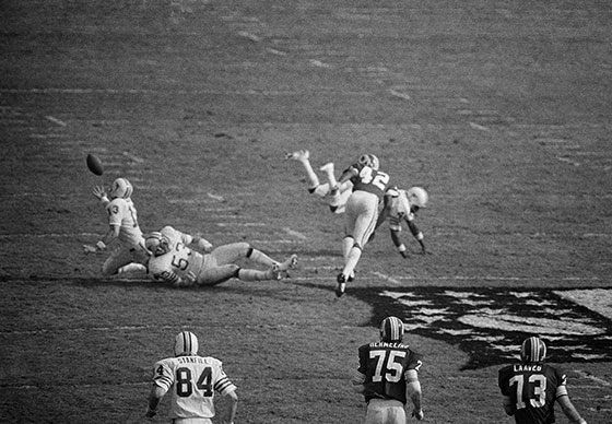 And, of course, this moment was about living, and surviving, the blocked field goal and ensuing Mike Bass touchdown when Miami kicker Garo Yepremian picked up a loose football and tried a, well, what was supposed to be a pass.